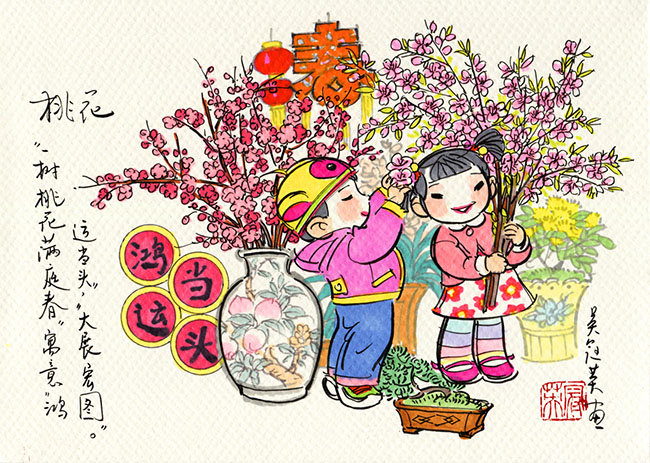 图为《广州过年,花城看花》系列明信片“桃花”。