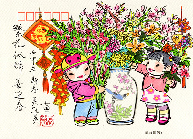 此外,1月10日由吴冠英为广州邮政创作的《广州过年,花城看花》明信片在广州首发。