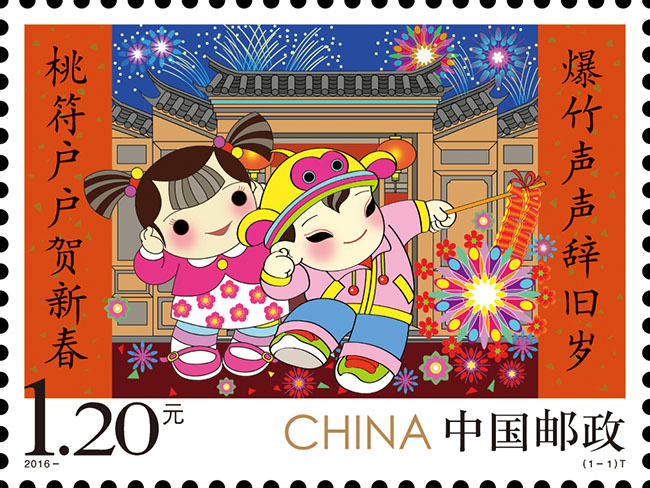 欢欢喜喜来拜年——清华美院吴冠英设计的2016年《拜年》邮票等首发