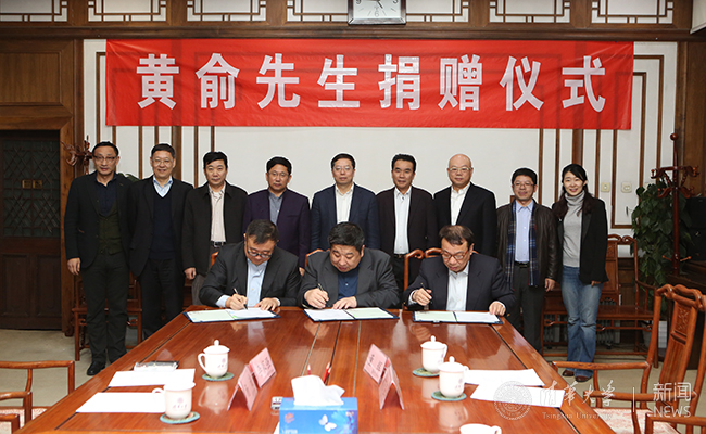黄俞、杨斌、李家强共同签署捐赠协议。