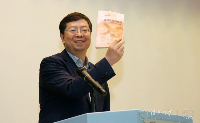 邱勇校长展示《续写岁月的传奇-清华学子感悟<平凡的世界>》样书。