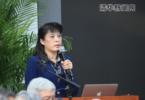 黄翊东介绍了电子系近年的发展状况。她从镌刻于电子系系馆大厅影壁、由李传信老师题写的“严谨、勤奋、求实、创新”的清华学风谈起,就课程改革、系馆建设、人事改革以及科研体制改革等几个方面汇报了电子系的发展现状,分析了电子系发展所面临的机遇和挑战,明确了电子系建设国际领先电子工程学科的发展目标。