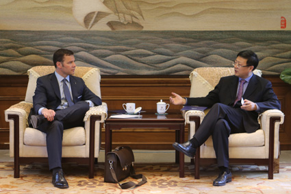 图为陈吉宁会见康恩先生。记者 苑洁 摄