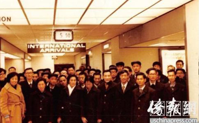 柳百成与第一批赴美学者抵达纽约机场 1978年12月