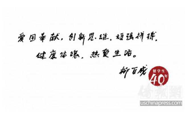 对于年轻人,柳百成说自己有20字、五句话的忠告:“爱国奉献、敢于创新、顽强拼搏、健康体魄、全面发展。”其中“敢于创新”与他赴美访问的经历息息相关。