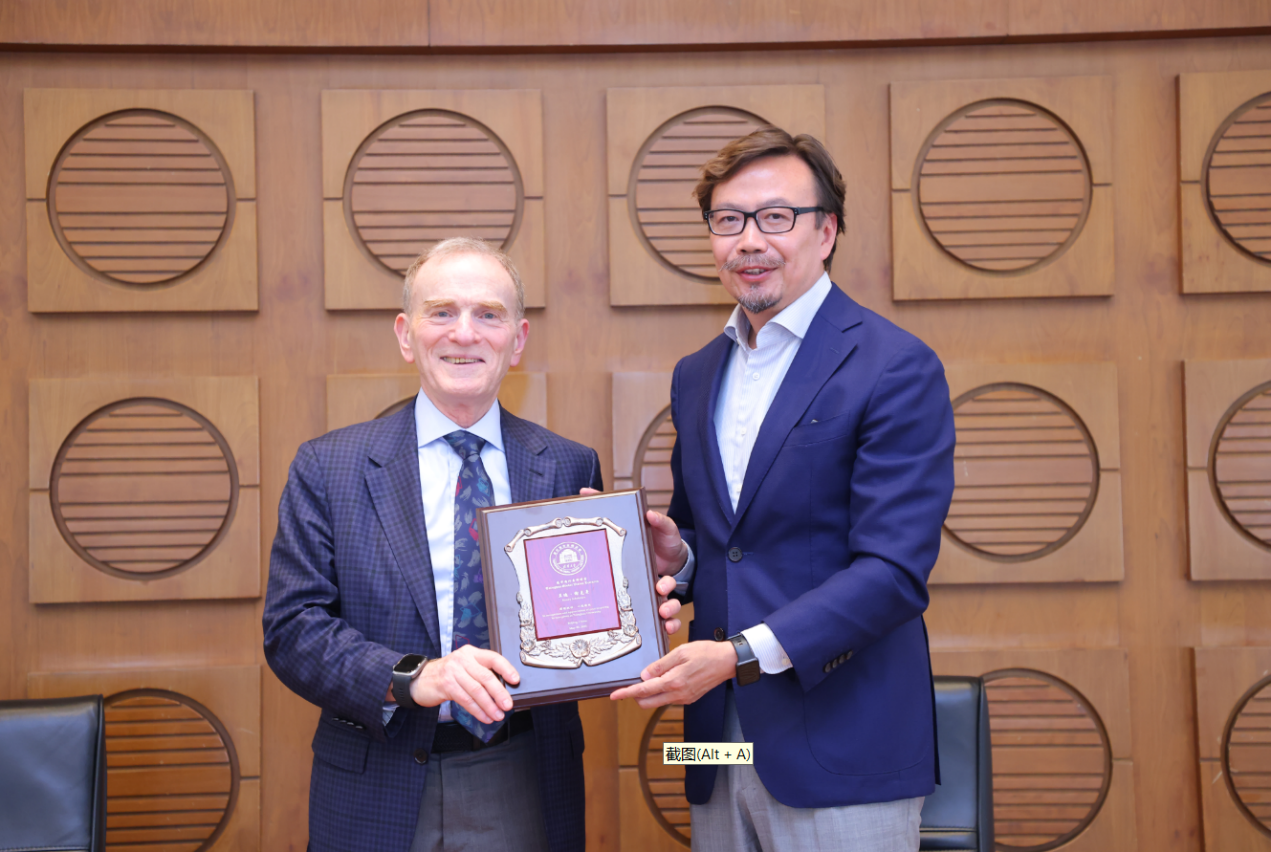 俞立向兰迪·谢克曼赠送清华海外名师讲堂纪念牌