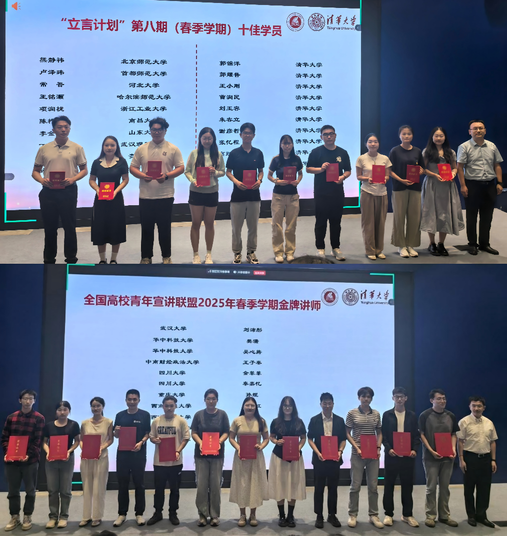 现场为“立言计划”第八期(春季学期)“十佳学员”,博士生讲师团“星级分团”代表,全国高校青年宣讲联盟与星空体育博士生讲师团金牌讲师、高级讲师及精品课程获奖代表颁奖。