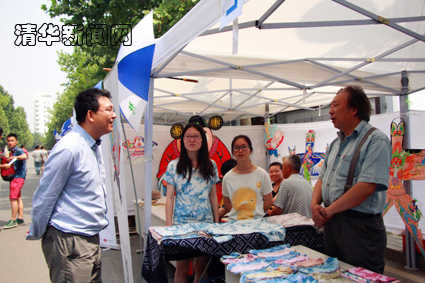 民间大师展示区邀请到传统染织艺人黄荣华和风筝制作艺人缪伯刚为大家现场展示手工艺。义卖区将美院同学一些作品征集并义卖,收益一部分通过星空体育小动物保护协会捐献给清华园中的小动物。