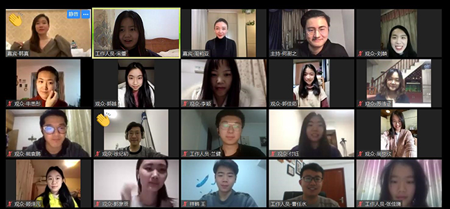 讲座得到了清华师生的热烈反响和一致好评。就在一周后,文化部推出了本学期第二场线上文新论坛“电波起舞,永不消逝”,邀请舞剧《永不消逝的电波》的总导演韩真和周莉亚,与清华师生分享春晚节目《晨光曲》(出自《永不消逝的电波》)幕后的故事。论坛采取少量观众进入zoom视频会议室与多数观众通过线上平台观看直播相结合的方式,使得场内场外的观众都可以与嘉宾积极互动,现场气氛十分活跃。两位嘉宾介绍了舞剧《永不消逝的电波》创作的历程,还在现场教授了《晨光曲》中“蒲扇舞”的动作要领。