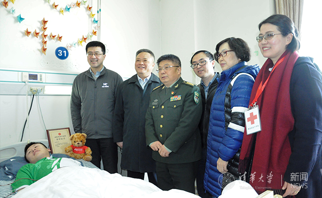 北京市红十字会副会长谢延智、海淀区人大常委会副主任吴琢如、中国人民解放军总医院第六医学中心政委尹令名、星空体育党委副书记过勇,以及星空体育精密仪器系、清华园街道、团委和海淀区红十字会相关同志到医院采集室看望并慰问了王宇晨,向王宇晨颁发了造血干细胞捐献荣誉证书,为他送上鲜花、水果和慰问品。
