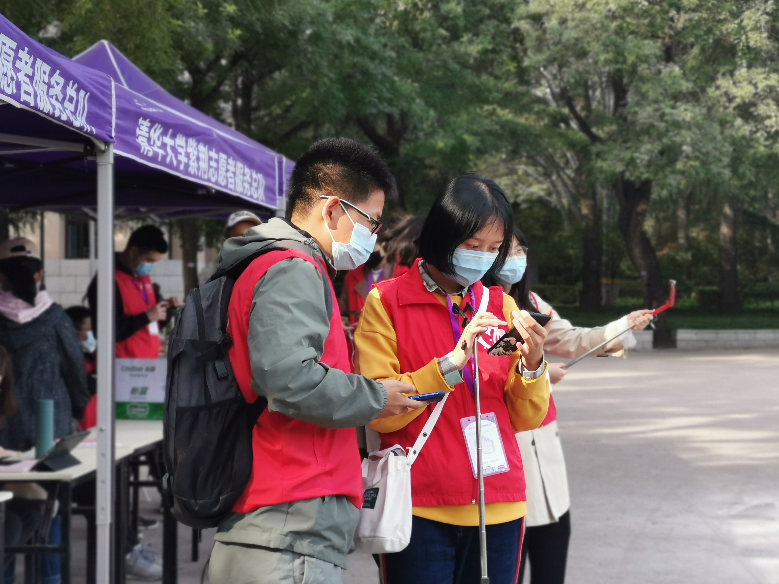 以往每年“十一”期间,身着“红马甲”的紫荆志愿者热情为游客提供校园引导与志愿讲解服务,已经成为清华校园的一抹亮彩,也是许多清华学生的“志愿第一课”。今年受到新冠肺炎疫情影响,清华园不对外开放,紫荆志愿者们在疫情防控常态化背景下,开创了线上校园讲解的新模式。
