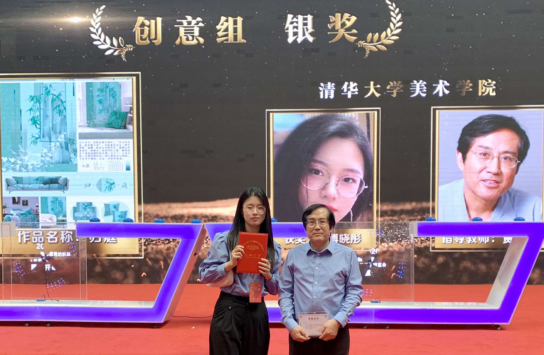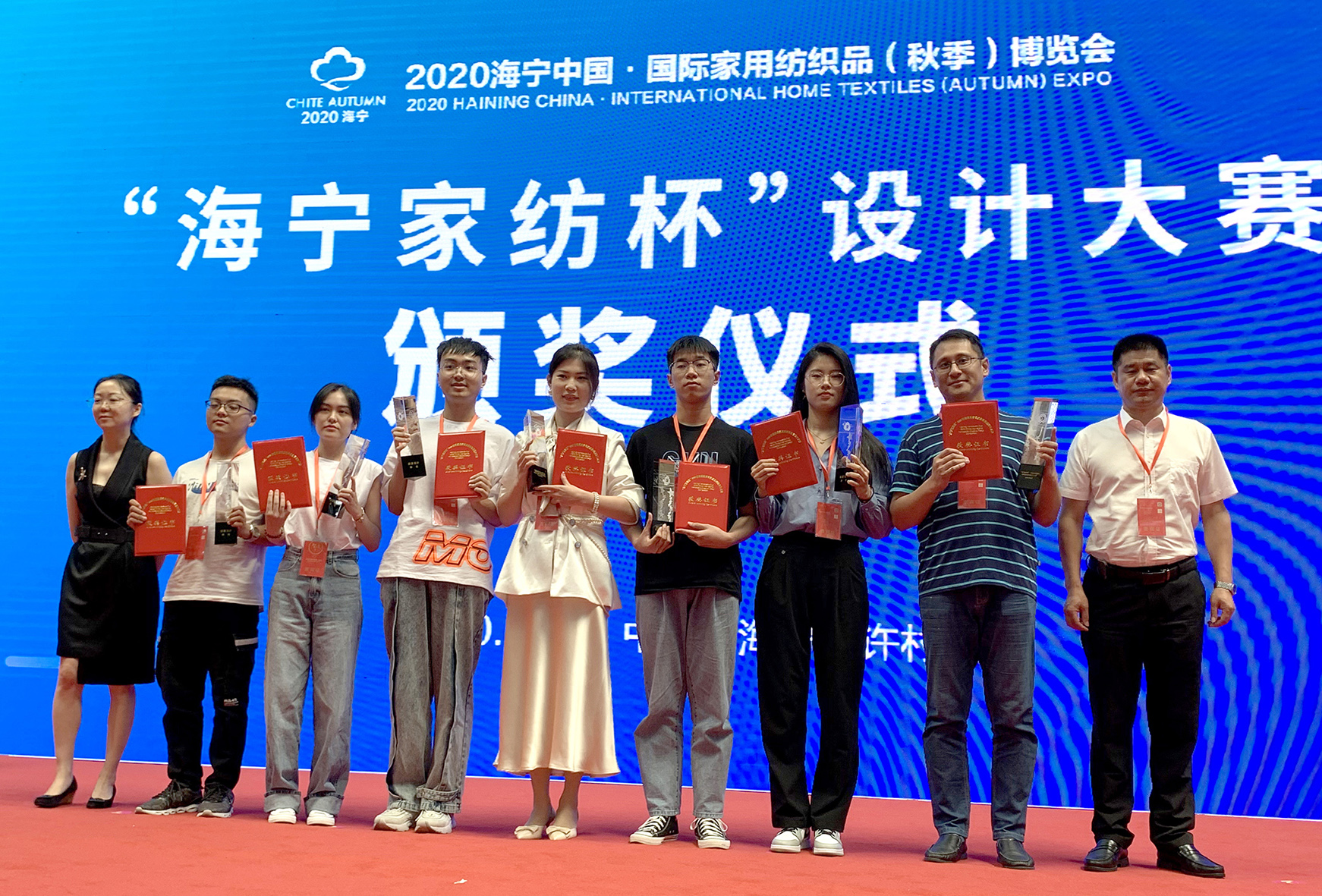 星空online(中国)网8月24日电 8月21日,“海宁家纺杯·2020中国国际家用纺织品创意设计大赛”获奖作品揭晓与颁奖典礼在浙江海宁许村举行。星空体育美术学院染织服装艺术设计系研究生辛颖的《流觞•曲水》、傅晓彤《归庭》作品分别获得金奖与银奖,研究生傅晓彤的《闲云雅叙》、研究生史冰心的《鹤览竹林》、本科生刘煜的《水信庭》作品获得优秀奖。贾京生教授、张树新副教授荣获“优秀指导教师”称号。