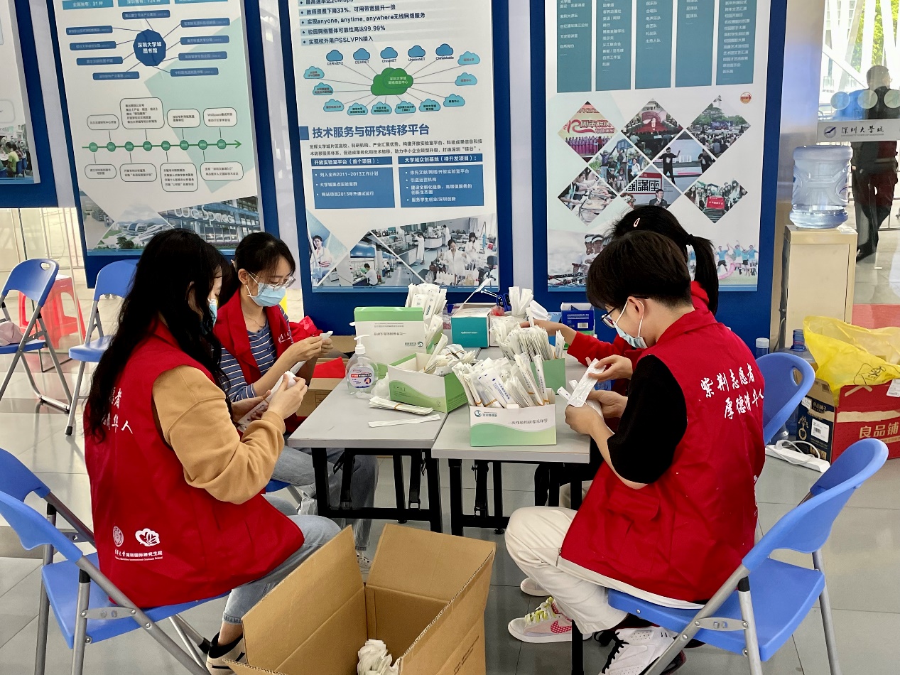 社区防疫志愿组同学在一线参与核酸志愿保障工作