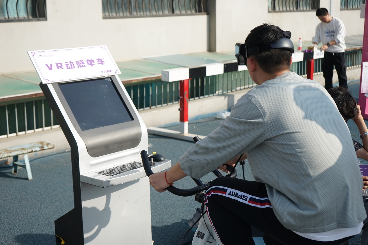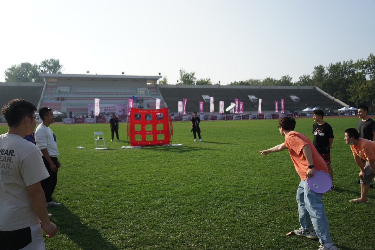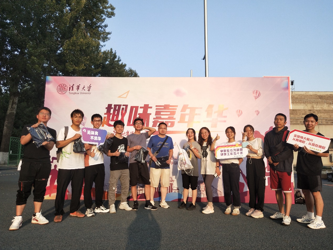 趣味嘉年华设有趣味团体项目和趣味个人项目。团体项目采用两两PK制,包括飞盘九宫格、台式冰壶、VR滑雪机、迷你排球和水上闯关5个项目。个人项目包括攀岩、VR动感单车、投篮挑战、眼疾手快、冰球撞击、激光射击、投壶、足球飞镖8个项目。嘉年华现场热闹非凡,共有来自25个院系的60支队伍(包括15支课题组队伍,26个班团集体队伍和19个体育俱乐部队伍),共360位师生参加了团体项目,近800名同学通过“清动圈”和“水木汇”小程序报名参加了个人项目。
