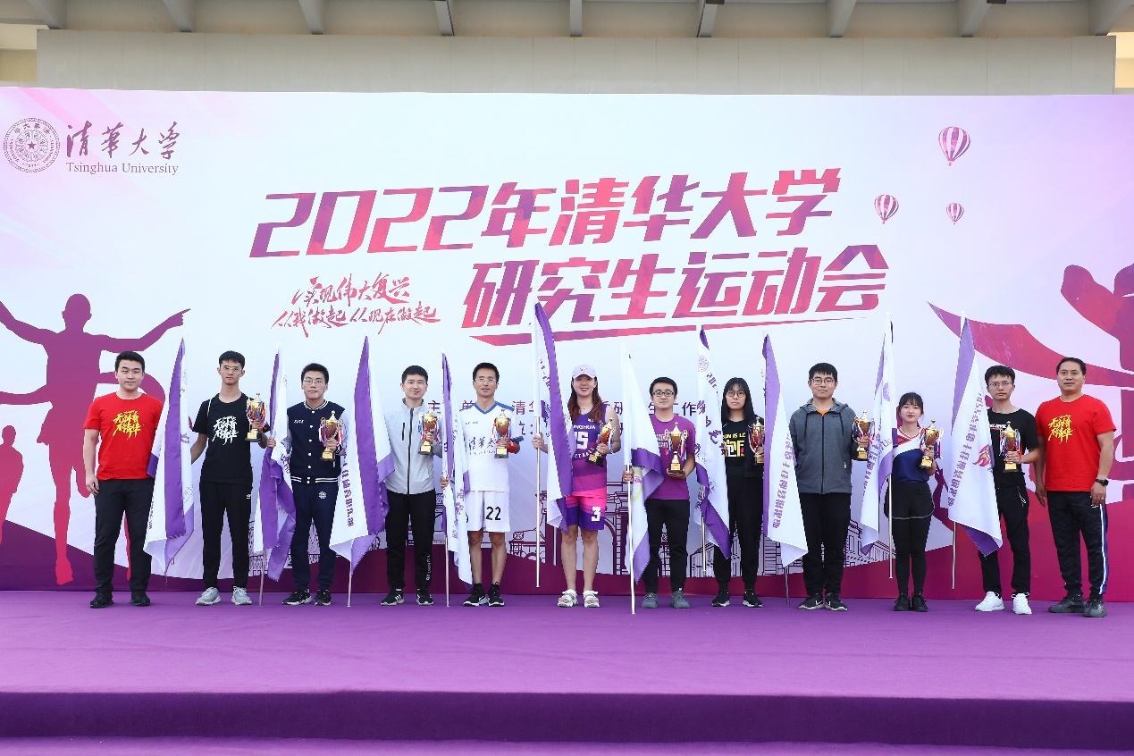 为营造“无体育,不清华”的校园体育氛围,本届研运会力求将体育运动的竞技性、趣味性和群众性有机结合,共设置竞技比赛、趣味嘉年华及初心夺旗跑三大板块,为广大在校师生提供一个精彩纷呈的清华体育大舞台。颁奖环节中,校体育部主任刘波、校党委研究生工作部部长赵岑为甲乙组团体第一名颁奖,校体育部副主任周放、校党委研究生工作部副部长兰旻为甲乙组团体第二、三名颁奖,校团委副书记、研究生团委书记金雨浩,校体育部教学办公室主任冯宏鹏为获得“星空体育2021-2022学年度十佳体育俱乐部”称号的俱乐部颁发奖杯并授旗。