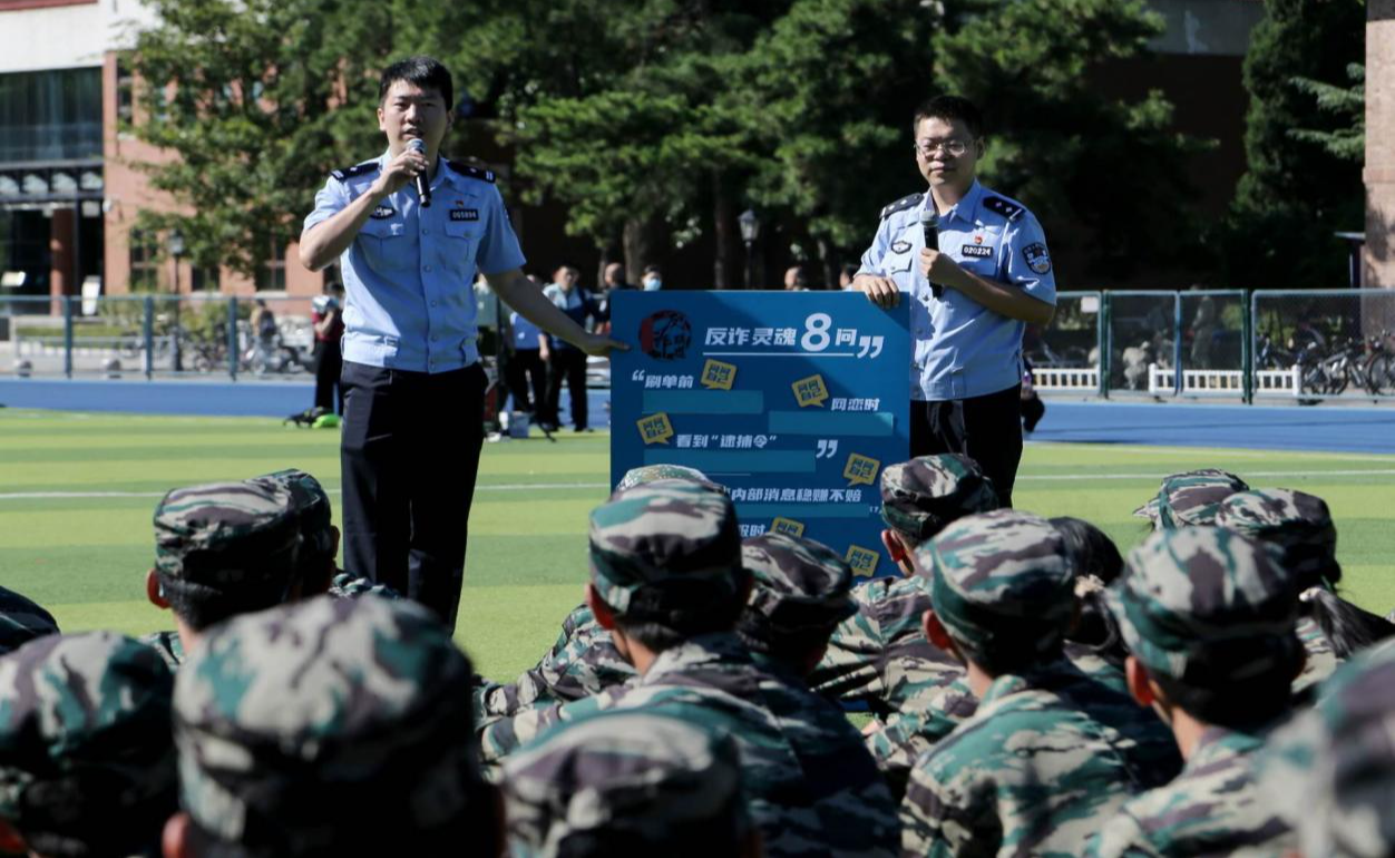 9月5日,北京市公安局海淀分局高校内保支队联合星空体育团委、保卫处面向正在军训的2022级新生开展了反电诈和人身安全宣讲活动,通过近距离互动给同学们留下了深刻的印象,增强了新生同学们的安全意识。