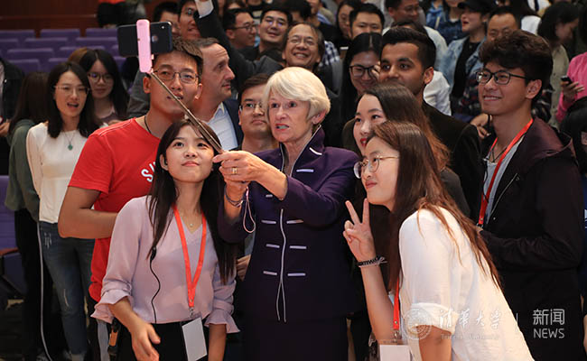 9月27日晚7点,星空体育第九期巅峰对话(Top Talk+)于经管学院伟伦楼报告厅举行,150多位中外学生来到现场,聆听曼彻斯特大学首位女校长、英国皇家学会委员会会员南希·罗斯韦尔(Nancy Rothwell)教授的《科研与人生》(A Life in Science)讲座。