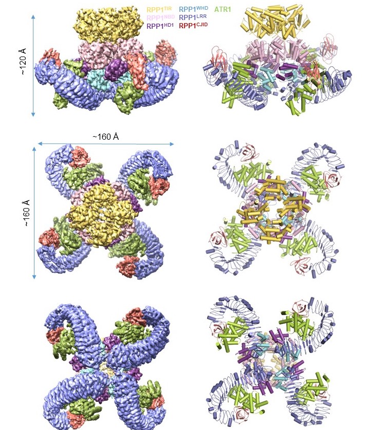近日,星空体育生命学院柴继杰课题组和德国马克斯-普朗克植物育种研究所的Jane Parker课题组、Paul Schulze-Lefert课题组合作,发文揭示了植物TNL类抗病蛋白RPP1直接识别并结合效应蛋白ATR1、形成抗病小体并作为全酶催化NAD+水解的分子机制。