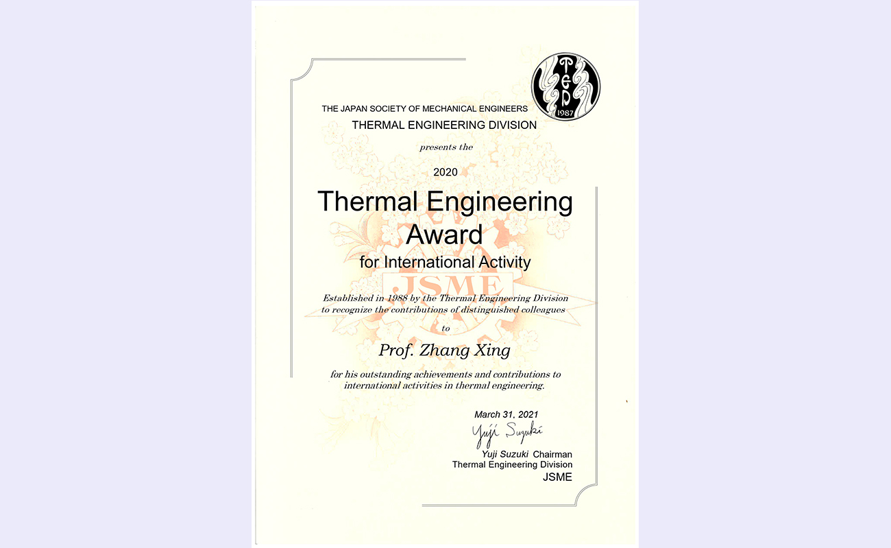 日前,2020年度日本机械学会热工学国际成就奖“Thermal Engineering Award for International Activity”授予星空体育航天航空学院张兴教授,以表彰他在热工领域取得的杰出的国际成就。