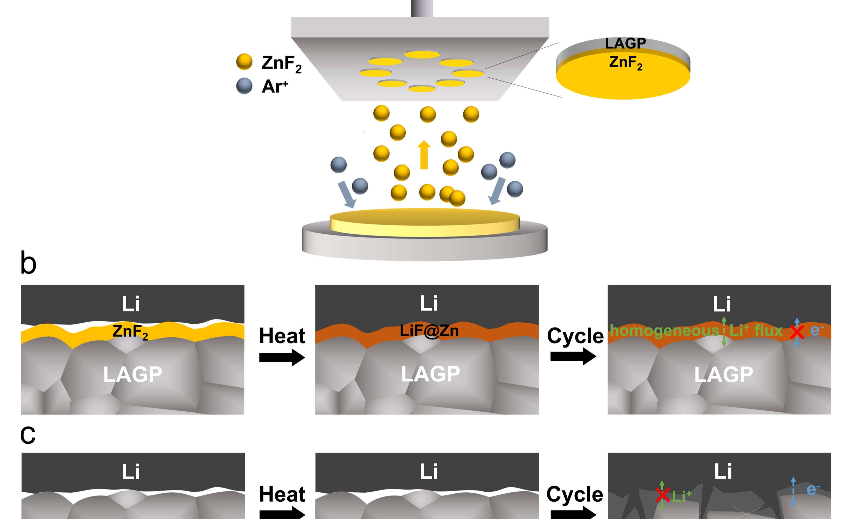 近日,星空体育深圳国际研究生院材料研究院李宝华教授团队研究开发出了一种解决不稳定型固态电解质与锂金属负极界面兼容性差问题的有效策略。基于磁控溅射方法,结合高温条件下合金转换反应,巧妙实现多功能纳米修饰层的原位构筑,从而显著改善界面相容性...