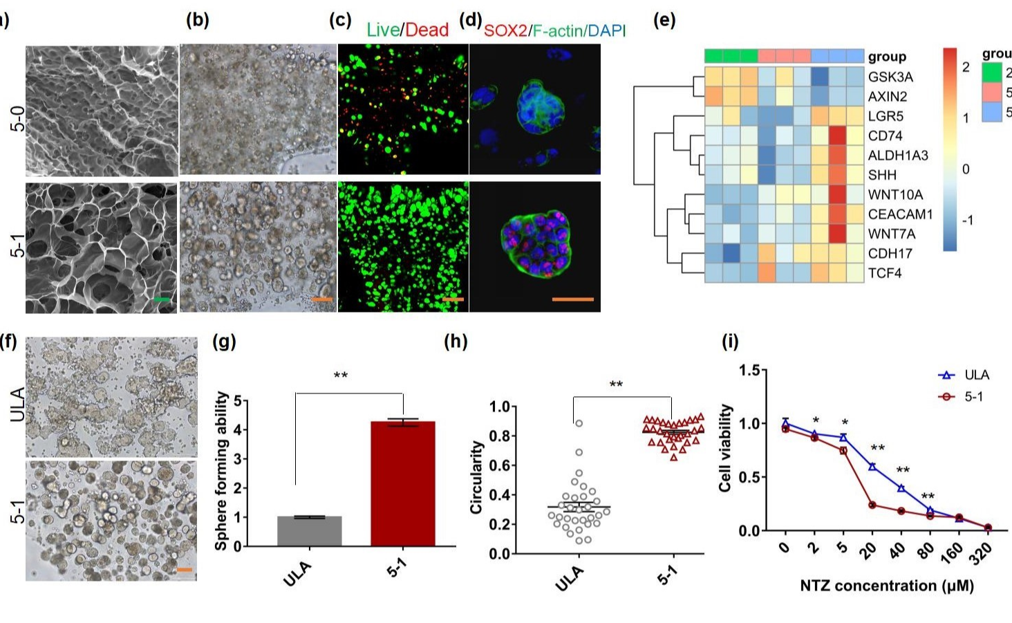 近日,星空体育机械系熊卓和张婷课题组的研究基于生物3D打印研发了一种结直肠癌CSCs高效诱导与富集的新方法,探究了生物材料诱导CSCs的新机制,为CSCs研究和靶向CSCs的高通量药物筛选提供了一种高效模型。