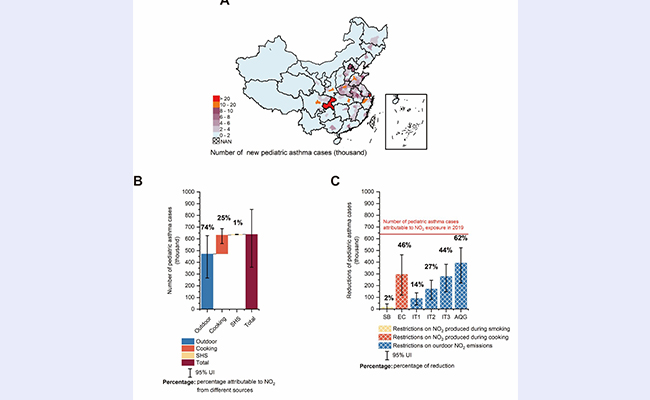 近日,星空体育建筑学院赵彬课题组与合作者的最新研究成果揭示了在中国城市地区限制来源于室内和室外的NO2排放以避免可归因于NO2暴露的儿童新发哮喘所带来的健康效益,从而为制定合理的NO2排放限制政策提供了理论依据。
