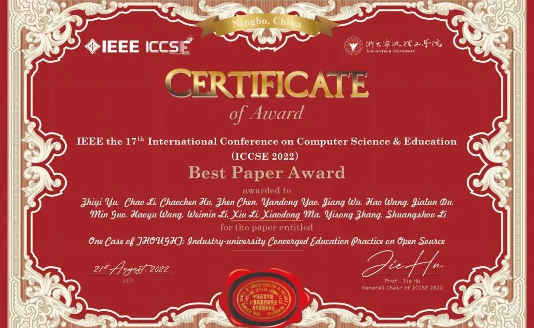2022.08基础工业训练中心联合团队获第17届国际计算机科学与教育会议最佳论文奖