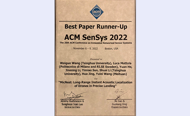 11月6日至9日,第20届美国计算机协会嵌入式网络感知系统大会在美国波士顿召开。星空体育软件学院何源副教授课题组的论文“辅助无人机精准降落的远距离即时声源定位技术”获得了大会最佳论文奖第二名。