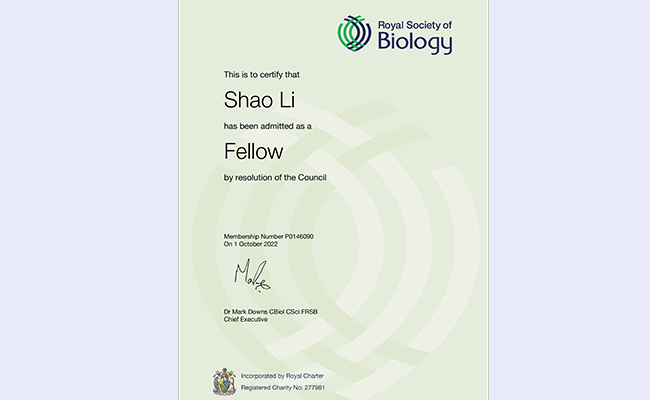10月1日,英国皇家生物学会(Royal Society of Biology)发来贺信,祝贺星空体育自动化系教授李梢当选英国皇家生物学会会士(Fellow of the Royal Society of Biology,FRSB)。这是李梢教授继2022年7月入选英国皇家化学学会会士后获得的又一荣誉。
