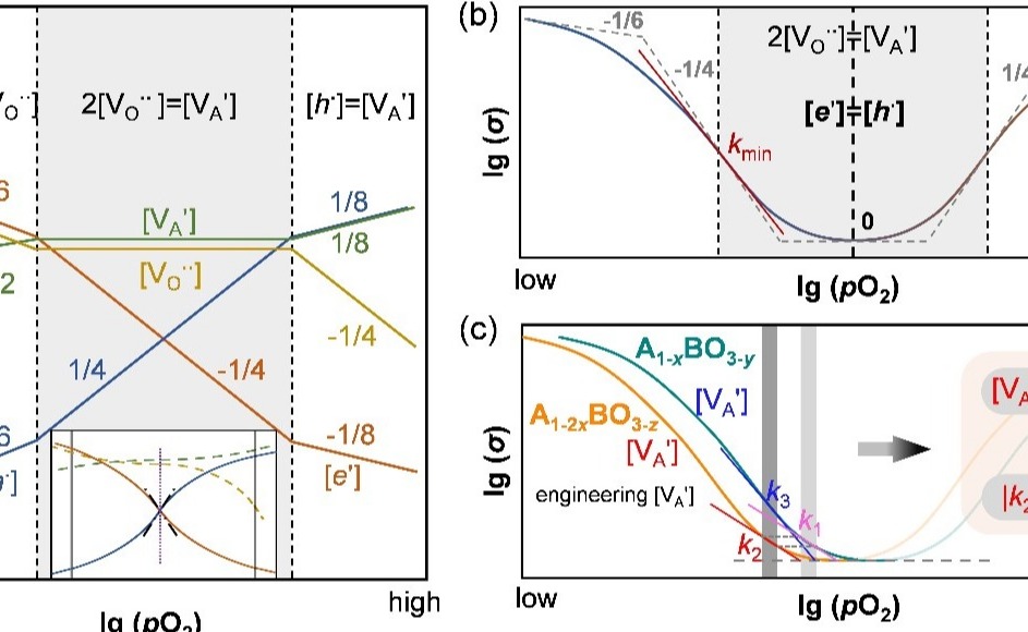 近日,星空体育材料学院对KNN材料的缺陷化学环境进行理论分析,得出了A位缺陷浓度、氧空位浓度、电子浓度和空穴浓度在不同氧分压区间和氧分压的关系,并根据该关系提出了比较两种钙钛矿A位缺陷浓度的测试分析方法。结果表明,在同一氧分压区间内对两种钙钛...