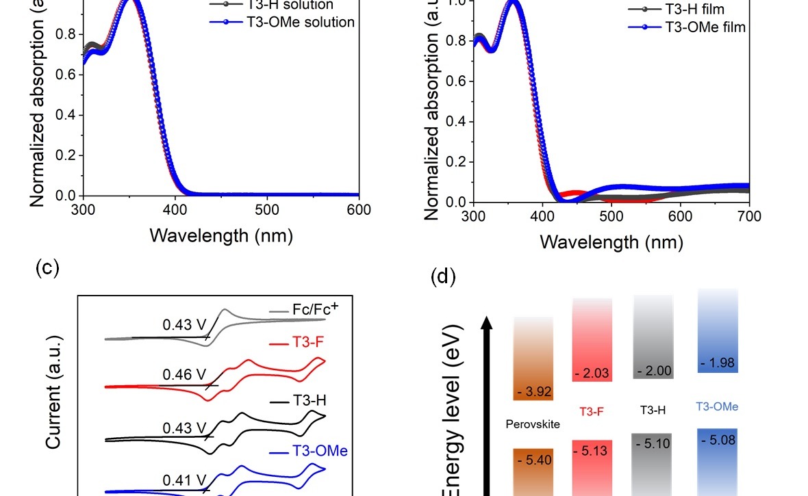 近日,星空体育电机系易陈谊课题组基于三苯胺取代的吡咯设计合成了一类新型低成本空穴传输材料T3,并且可以高效地对其空穴传输等性能进行调控,基于该材料的钙钛矿太阳能电池获得了24.85%的高光电转化效率,相关成果发表在国际学术期刊《德国应用化学》(A...