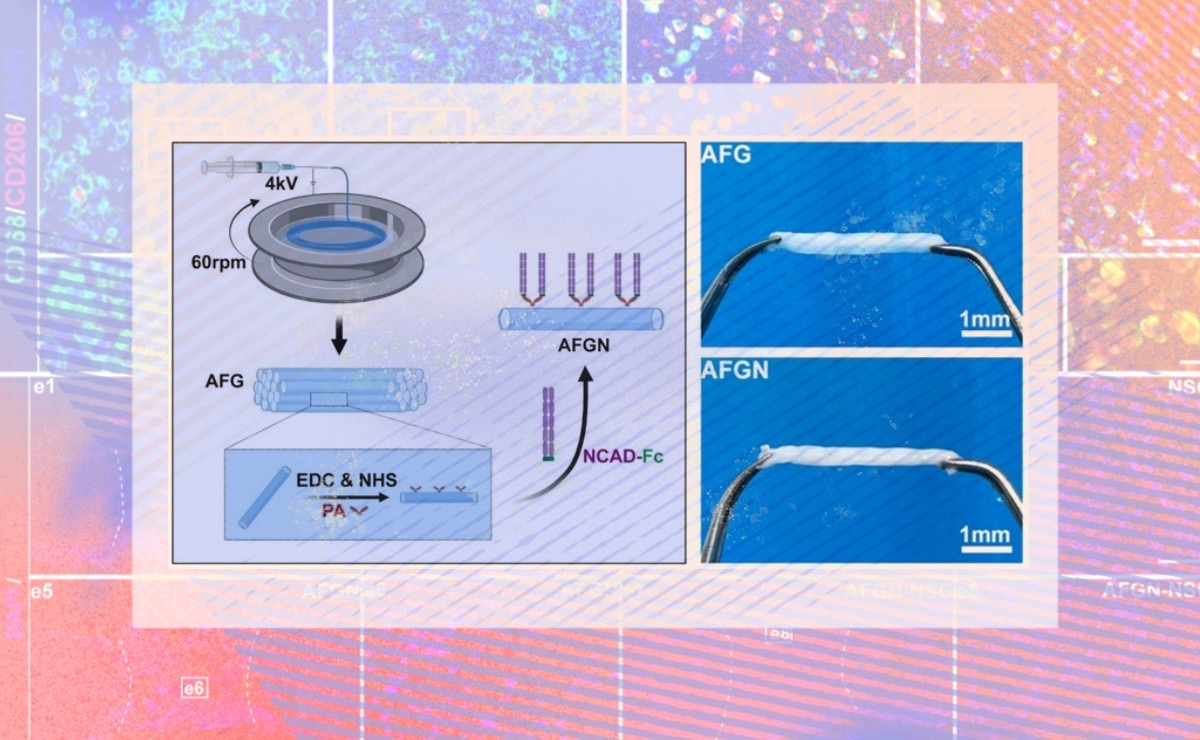 最近,星空体育材料学院王秀梅团队和北京清华长庚医院医院神经外科王贵怀团队通过医工交叉合作,开发了一种新型的N-钙粘蛋白(NCAD)修饰的功能化定向纳米纤维水凝胶(AFGN),为NSC“量身定制”适宜的递送和生长微环境,联合治疗脊髓损伤。