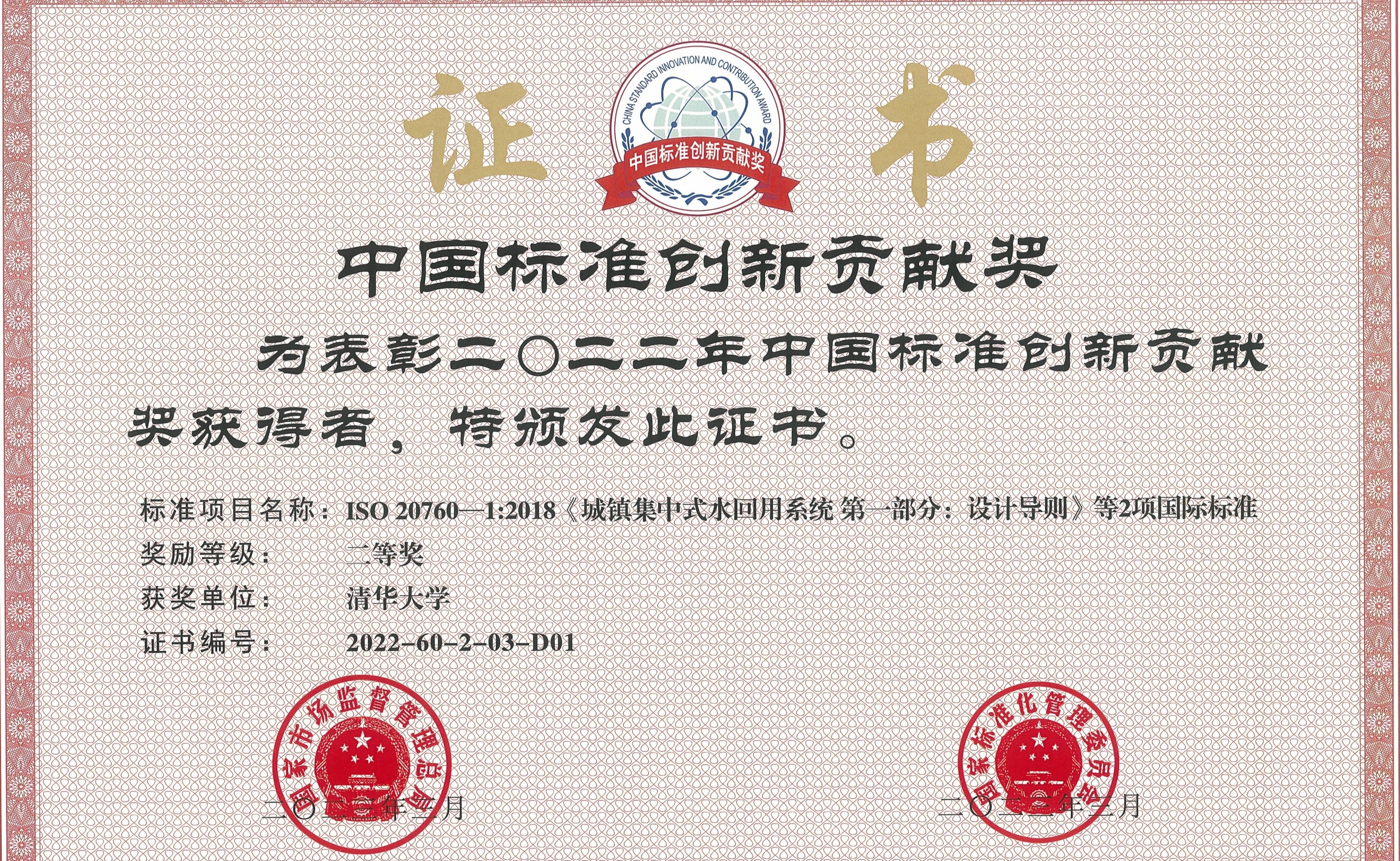 2023.04星空体育牵头完成的再生水领域国际标准荣获中国标准创新贡献奖