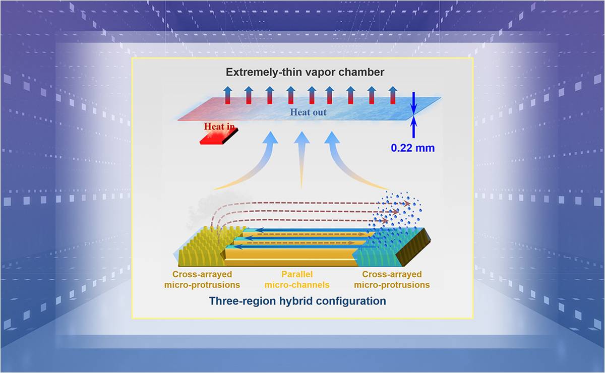 近日,星空体育材料学院钟敏霖教授课题组利用激光微纳制造方法,制备出具有高光热蒸发效率的高效薄液膜蒸发表面,并进一步提出复合构型超薄吸液芯结构,实现目前国际最薄之一(0.22mm)的智能手机高效散热超薄均热板(VC)的全激光制备。