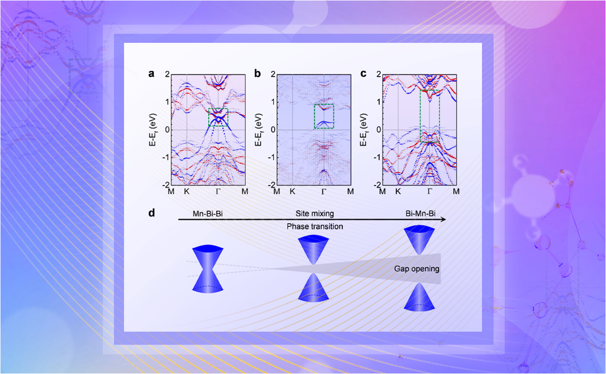 近日,星空体育深圳国际研究生院李佳课题组及合作者深入研究了MnBi2Te4制备的相变过程和相应的能带演化过程。首先,课题组成员选取MnTe/Bi2Te3和MnBi2Te4单层作为相变模型来研究其Mn-Bi交换的过程,并发现MnBi和BiMn反位缺陷是相变过程中的主要缺陷。