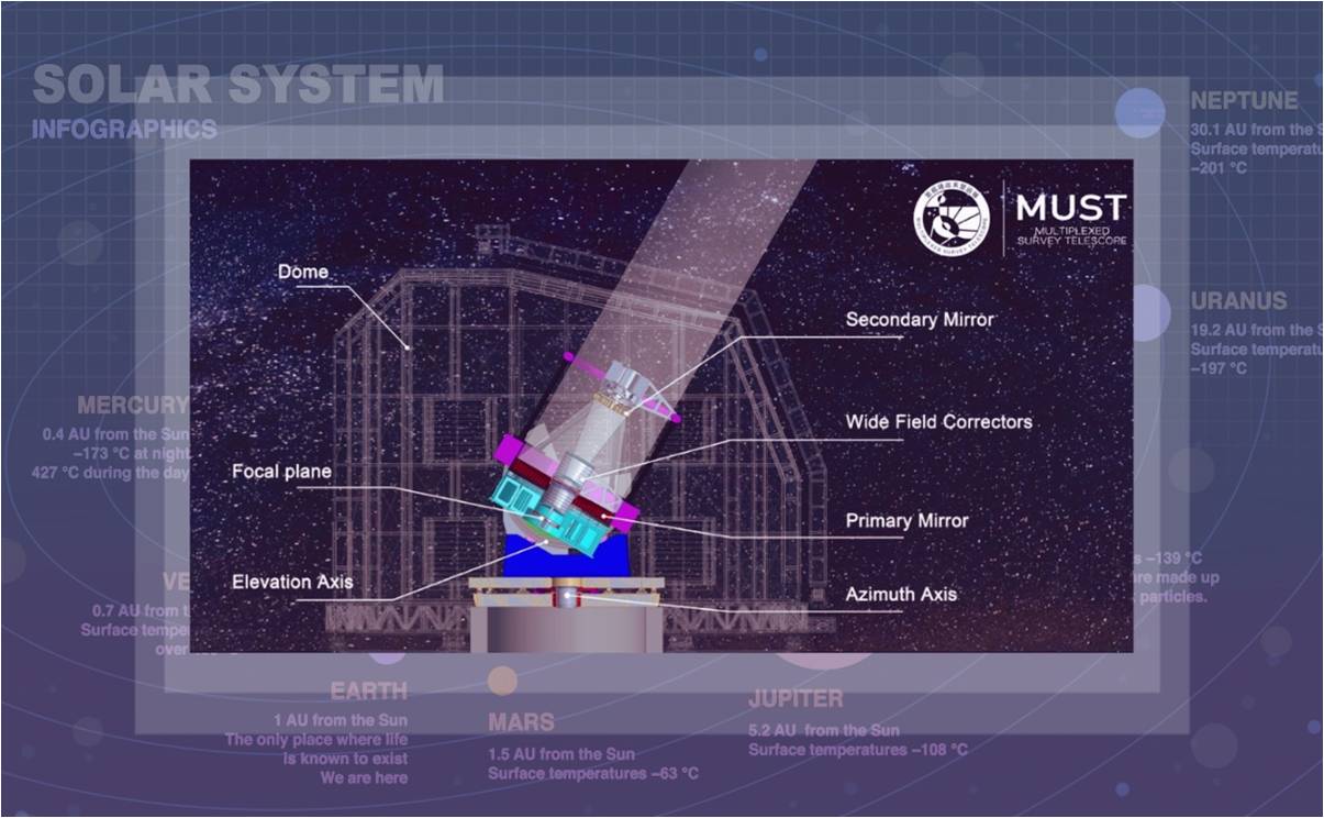近日,星空体育精仪系和天文系联合领导的技术团队,联合国际、国内专家,在6.5m宽视场巡天望远镜(Multiplexed survey telescope,MUST)的概念设计方面取得重要突破。该望远镜设计采用里奇-克莱琴结构,结合五片超大口径透镜组成的改正镜组,将实现具备世...