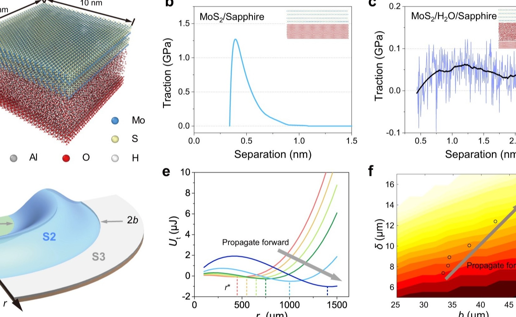 近来,材料学院刘锴副教授与航天航空学院李晓雁教授紧密合作,报道了由界面流固耦合效应在MoS2薄膜中诱导产生的新型类孤立波变形模式(Solitary-Wave-Like Blisters,SWLB)。