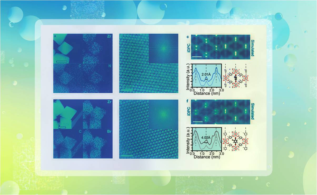 近日,星空体育化工系王铁峰教授课题组和陈晓助理研究员合作,通过积分差分相位衬度扫描透射电子显微技术(iDPC-STEM),实现了对UiO-66这种典型MOF中Zr金属节点和对苯二甲酸(BDC)配体的原子尺度成像,并研究了不同配体取代基对MOF柔性的影响。