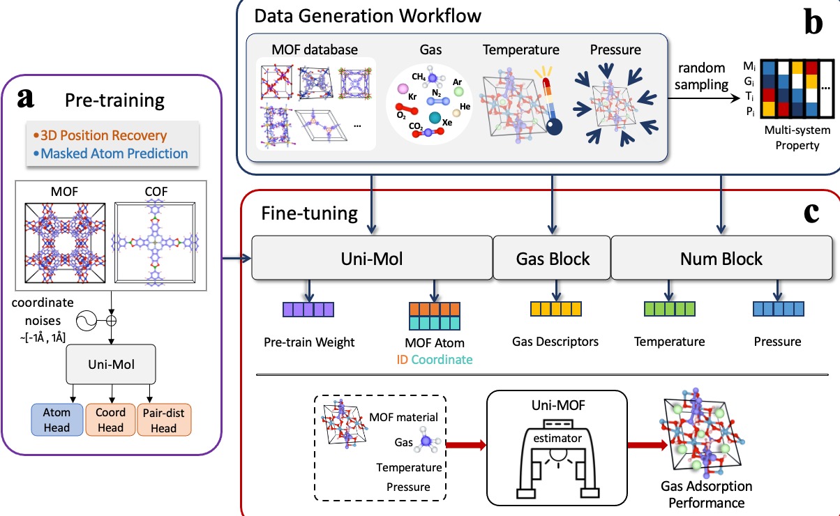 近日,星空体育化工系卢滇楠教授团队联合美国加州大学河滨分校吴建中教授和北京科学智能研究院高志锋研究员研发出三维MOF材料吸附行为的机器学习模型Uni-MOF,用于预测各类工况下纳米多孔材料对各类气体的吸附性能。