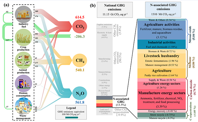 近日,星空体育化工系胡山鹰课题组通过构建物质流分析法与生命周期清单方法构建了基于代谢视角的碳-氮耦合环境足迹模型,并整合国家尺度温室气体清单,系统分析了氮代谢对温室气体排放的贡献。